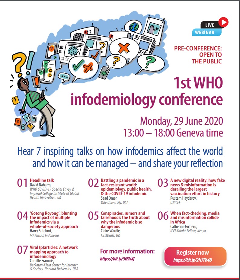 [Event #1] Pre-conference: 1st WHO Infodemiology Conference (Monday June 29, 2020 13:00 -18:00 Geneva/Paris time)