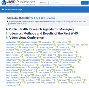 Calleja et al. (2021). A Public Health Research Agenda for Managing Infodemics: Methods and Results of the First WHO Infodemiology Conference. JMIR Infodemiology, 1(1), e30979.
