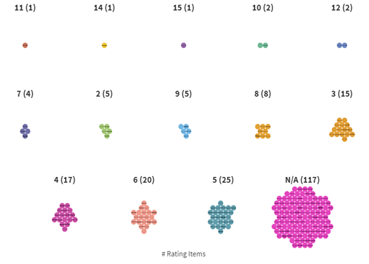 Figure 2: Number of numerical or textual categories used in the rating systems.