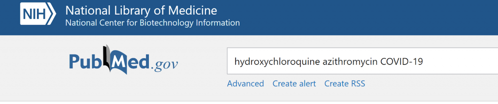 When we type in “hydroxychloroquine azithromycin COVID-19” into PubMed (Figure 3), the search pops up results like: