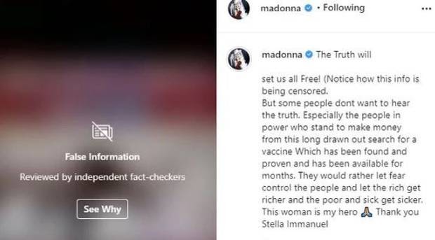 The post was shared by Madonna. Does her position as a global celebrity make you more likely to trust what she says? Do you believe her?
