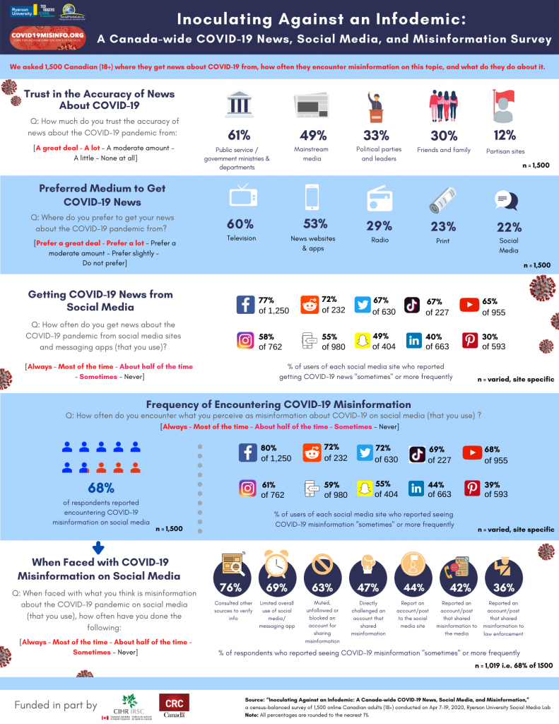 This survey report was produced by the Social Media Lab (SocialMediaLab.ca) at Ted Rogers School of Management, Ryerson University. It is released as part of the COVID-19 Misinformation Portal (Covid19Misinfo.org), a rapid response project funded by the Canadian Institutes of Health Research (CIHR).